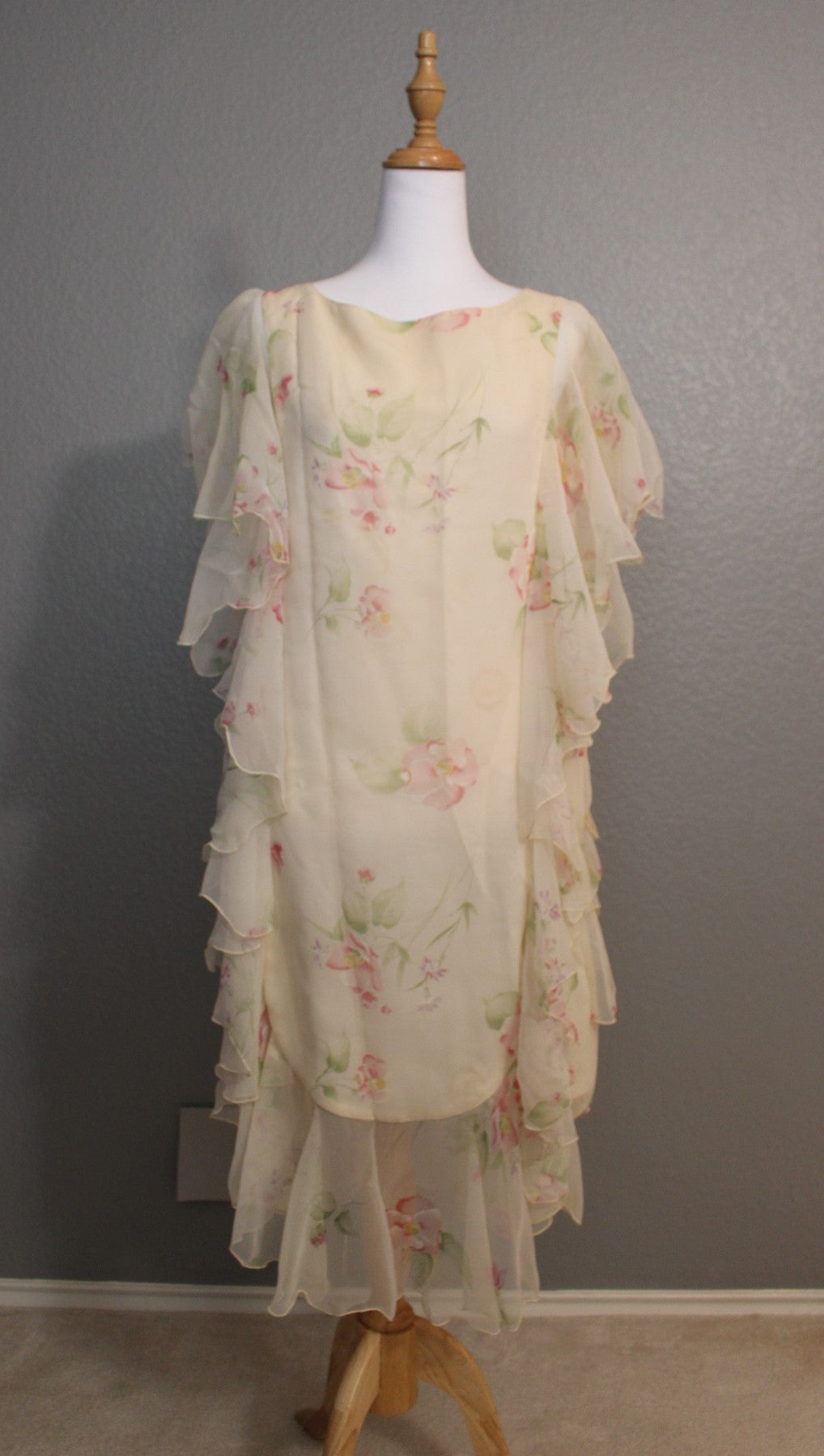 Creme Color Dress with Soft Pink Flowers with and without Scarf