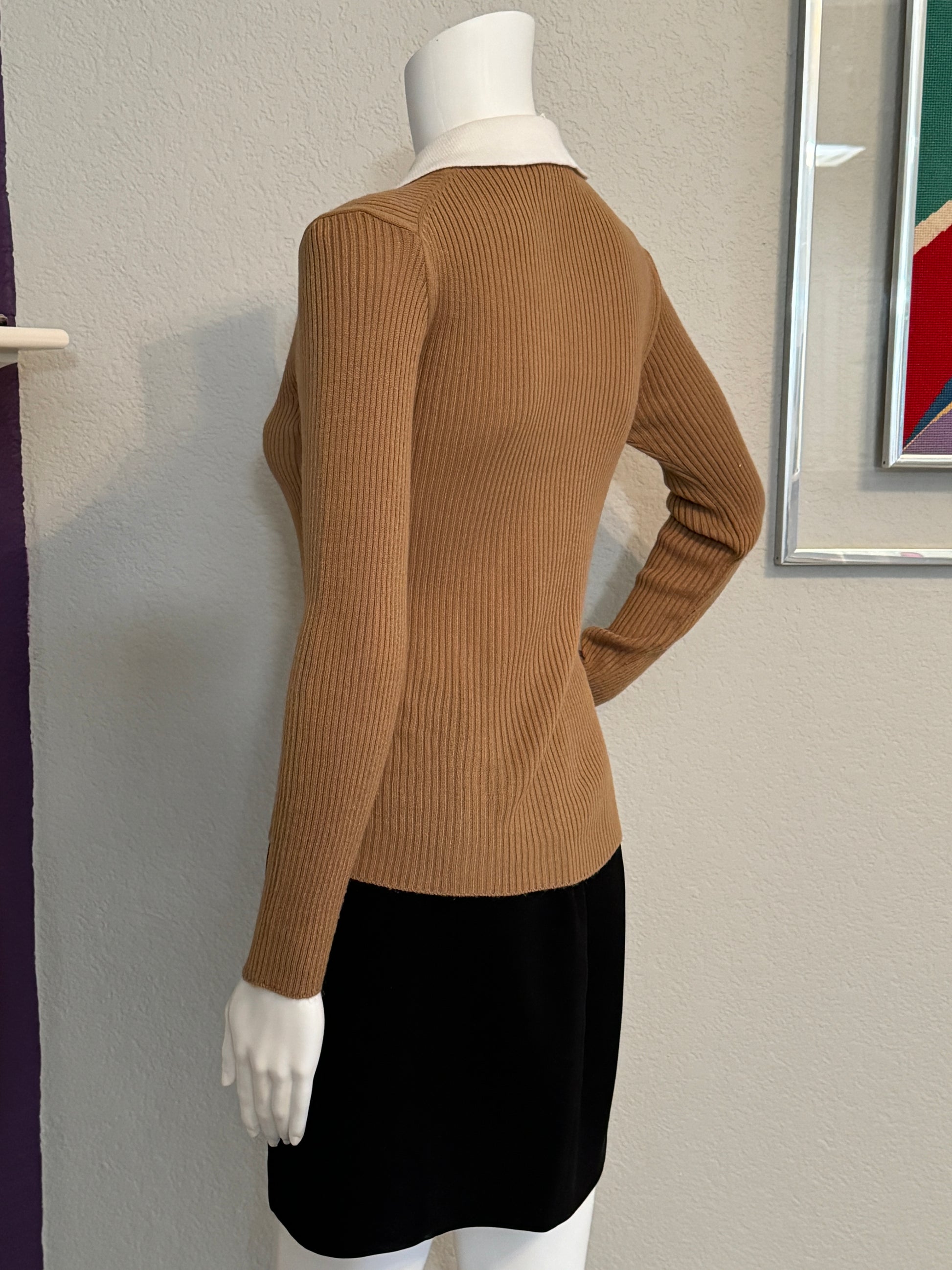 Kimlon Brown Long Sleeve Ribbed Sweater with Off-White Collar