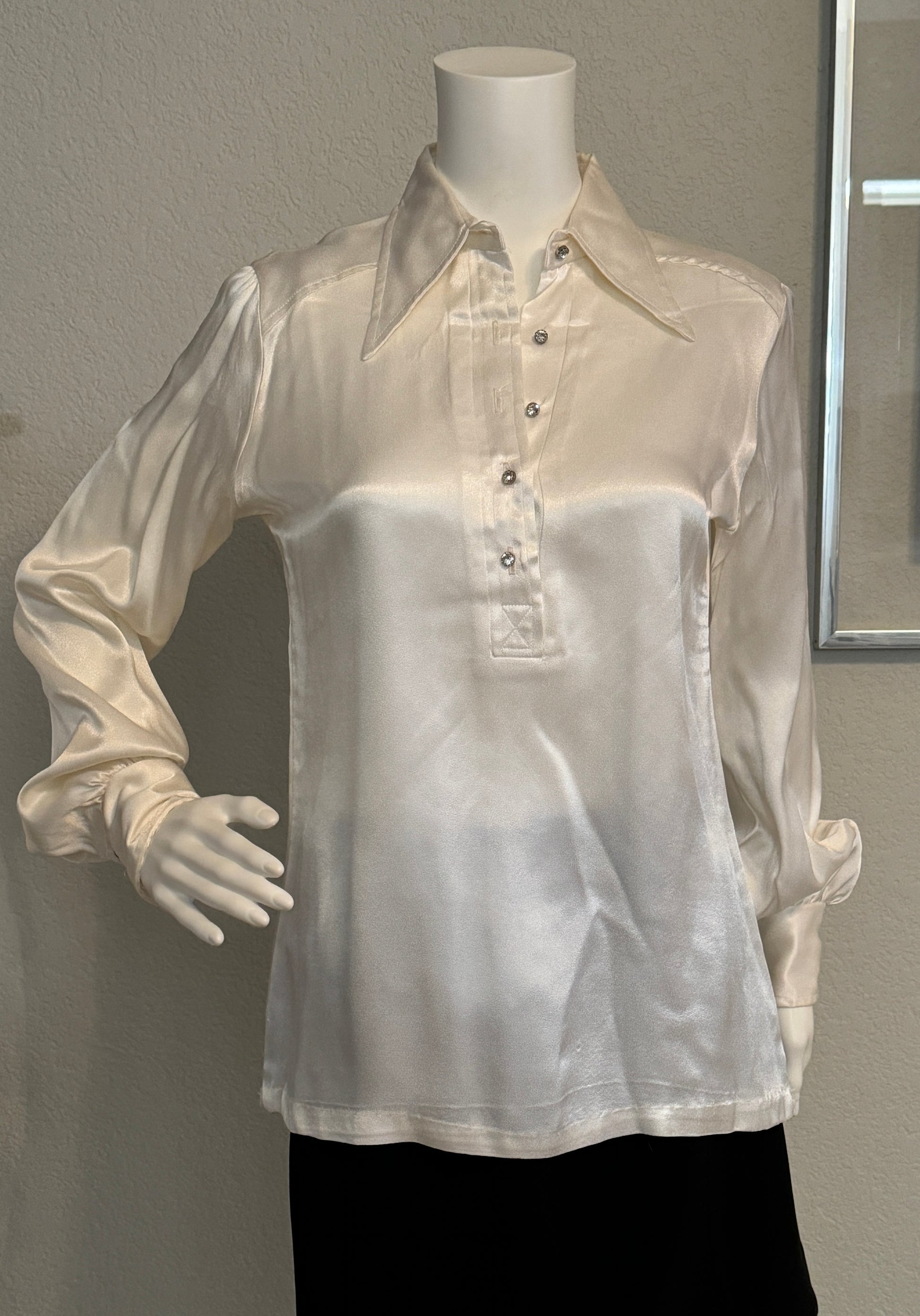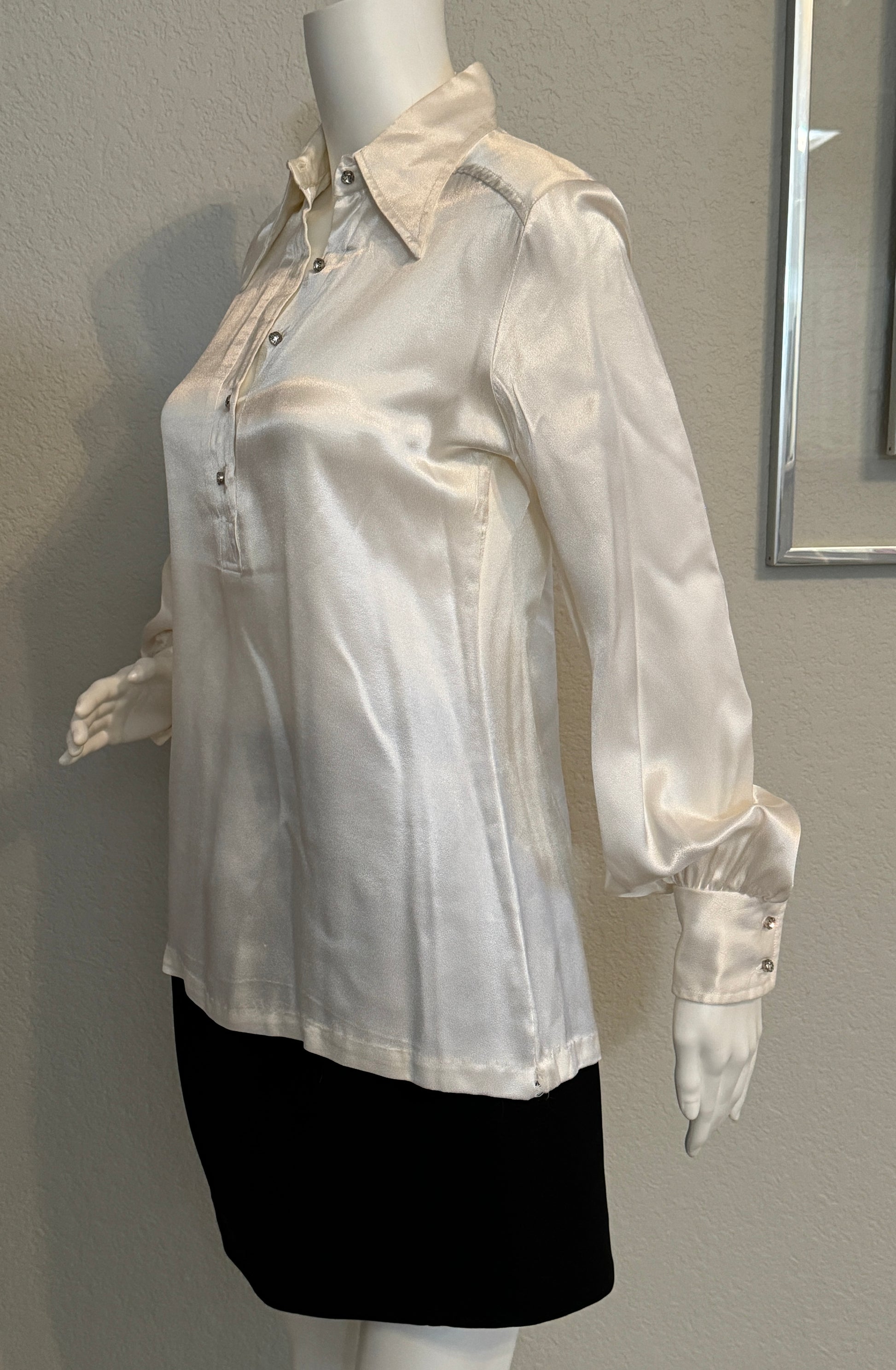 Lady Manhattan White Shiny Long Sleeve Blouse