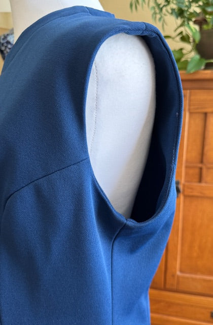 Vintage 1970s Empress of Dallas Navy Blue Sleeveless Dress with Red, White & Blue Striped Accent, Size Medium (M)